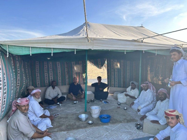 Preparing the radiometric survey equipment. Community leaders in and around our Jabal Sahabiyah exploration license convened for a meeting to discuss our upcoming exploration progress.